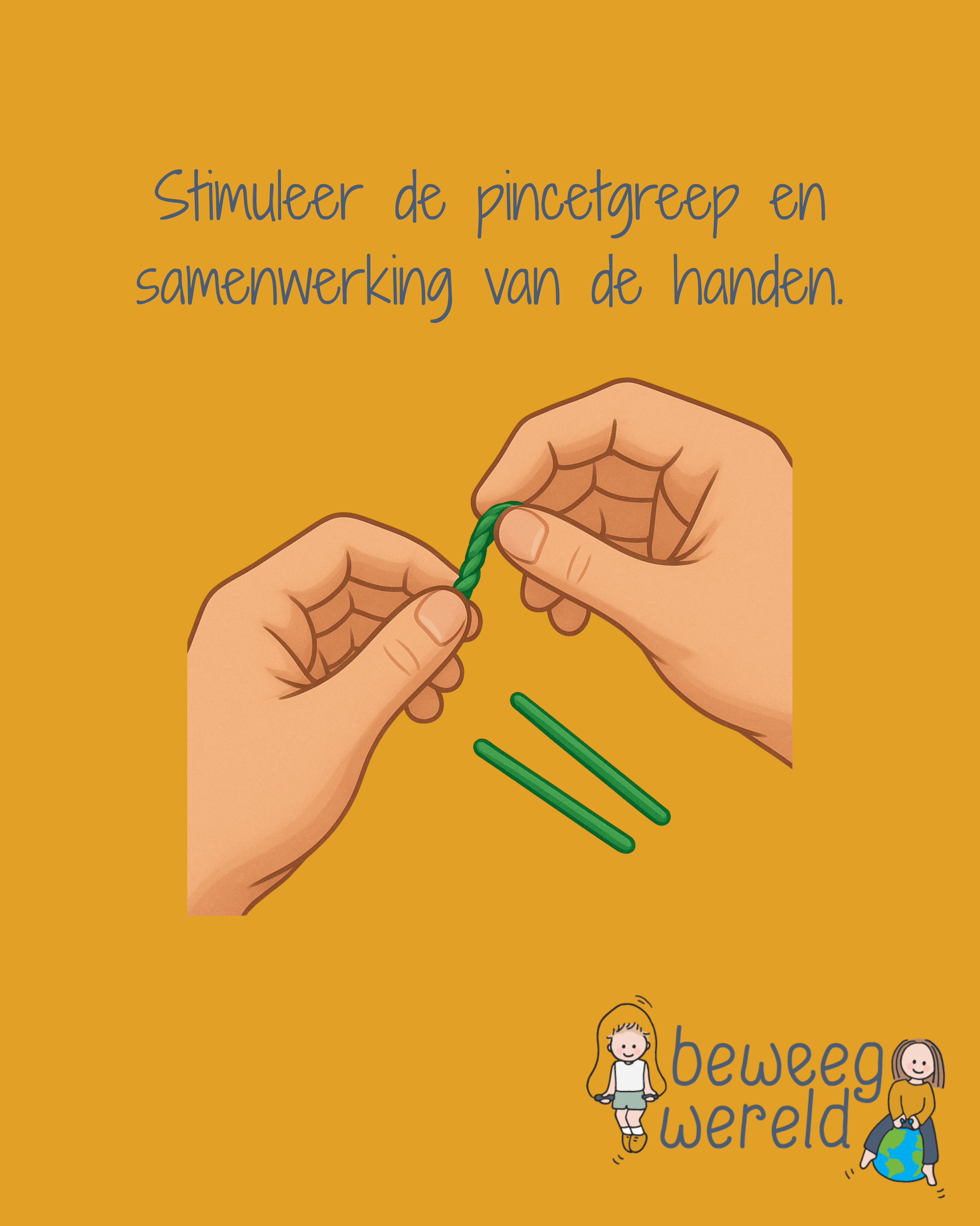 Elke beweging die kinderen met hun vingers maken: buigen, aanduwen, loshalen traint de samenwerking tussen hun handen en de kracht in hun vingertoppen. Ze voelen letterlijk wat ze doen, en dat maakt het makkelijker om later netjes te schrijven, te knippen of veters te strikken.