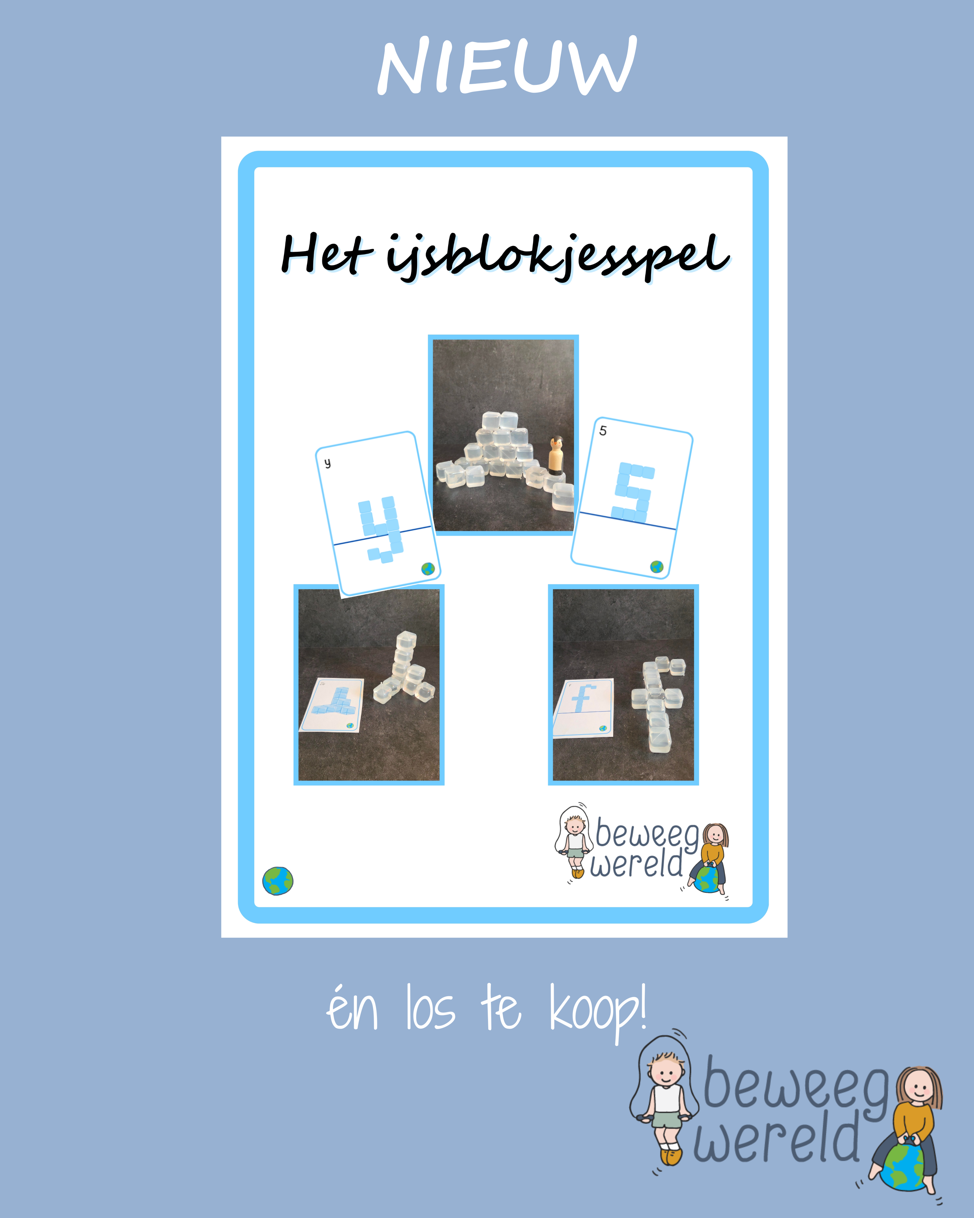 Daarnaast kunnen de ijsblokjes gebruikt worden om letters na te leggen. Door lettervormen aan te bieden die zijn opgebouwd uit rechte blokjes, leren kinderen het verschil zien tussen rechte en gebogen lijnen. Er is bewust gekozen voor voorbeelden met een grondlijn, zodat kinderen ook kennismaken met letters die boven of onder de rompzone uitsteken. Zo wordt spel gecombineerd met een eerste oriëntatie op lettervormen en schrijfontwikkeling.