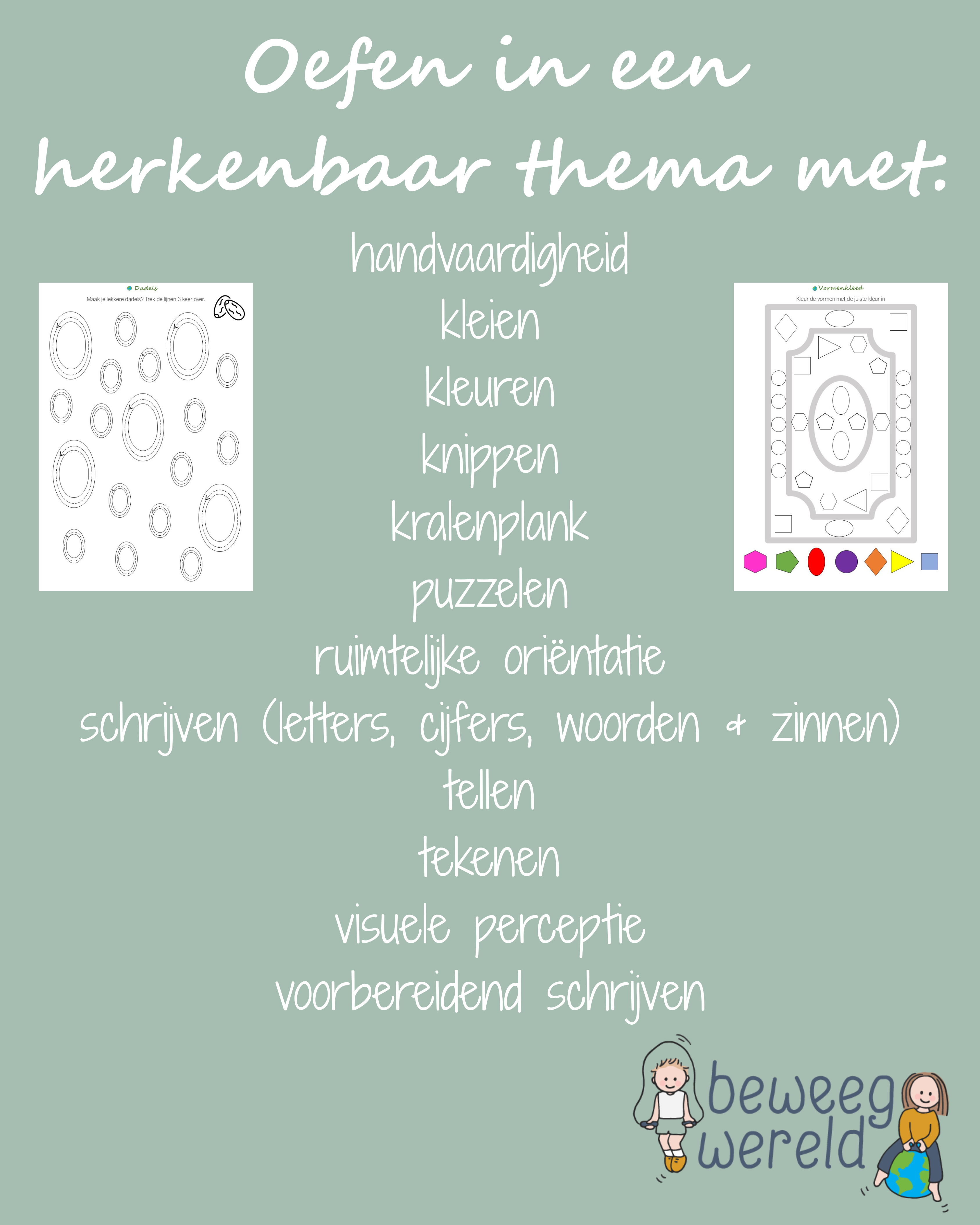 De werkbladen zijn flexibel inzetbaar in de praktijk, in de klas, in kleine groepjes of individueel, maar ook zeer geschikt voor thuis. Door de logische opbouw is het materiaal eenvoudig te differentiëren en direct toe te passen binnen een themaperiode of behandeltraject.